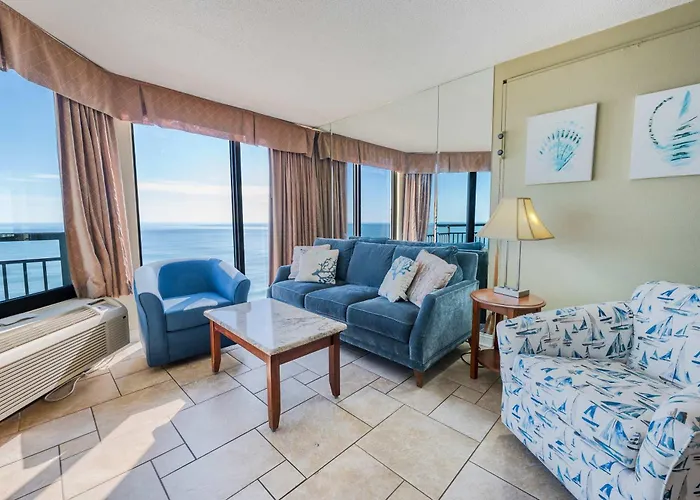 Offering a patio overlooking the city, New Coastal Charm, Direct Oceanfront Views, Pools Apartment Myrtle Beach villa is located just 5 minutes' walk from the Lost Mine Miniature Golf Course. Featuring a hot tub, the holiday home is 2.2 km from Ripley's Aquarium of Myrtle Beach|the Ripley's Aquarium of Myrtle Beach.